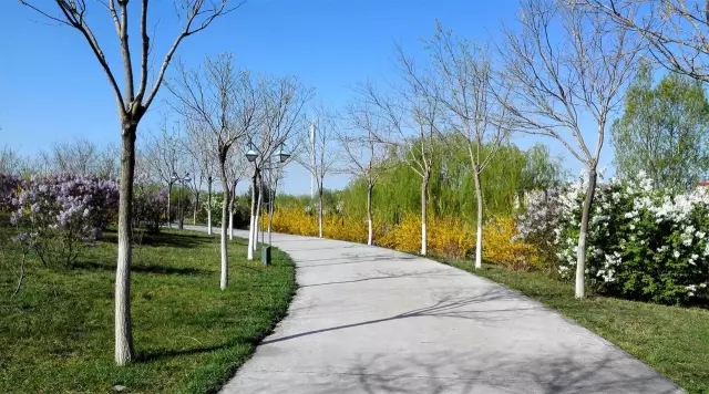 在这样一座缺水城市,能拥有占地面积236公顷的水景实属不易,因此很多市民假日都喜欢去金水湖游玩,春天是个万物苏醒的季节,又是踏青的好时节,金水湖的春天似乎比市区来的更早一些,许是湖水充足的缘故吧,市区的柳树刚刚发芽,金水湖畔的垂柳已经是绿茵茵的一片了,它们以婀娜多姿的姿态,招摇着迎接前来踏青的人们。